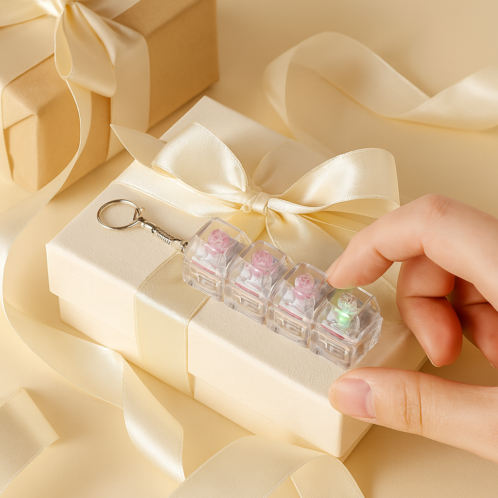 • A fun little gift for gamers, keyboard lovers, and fidget fans